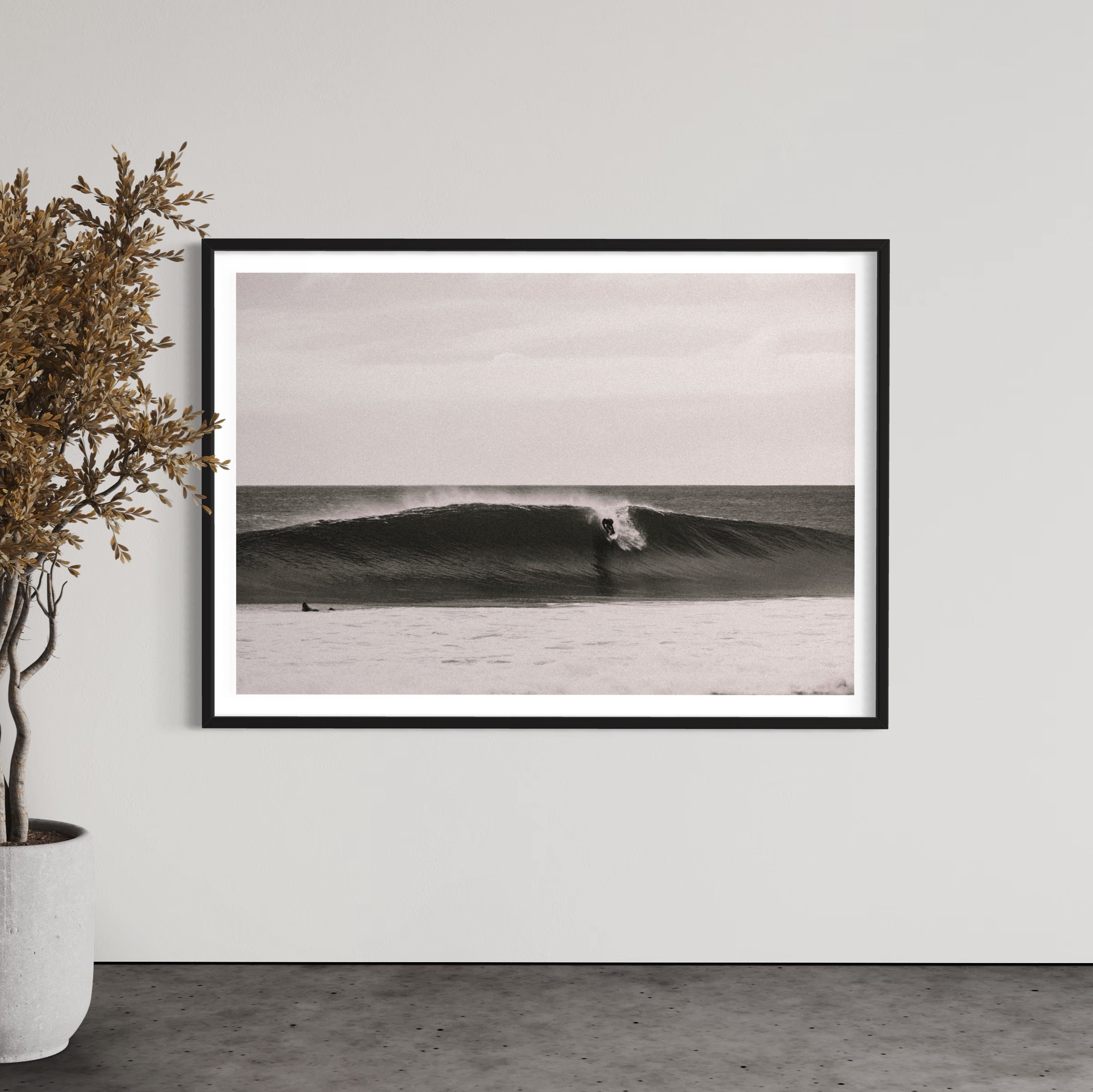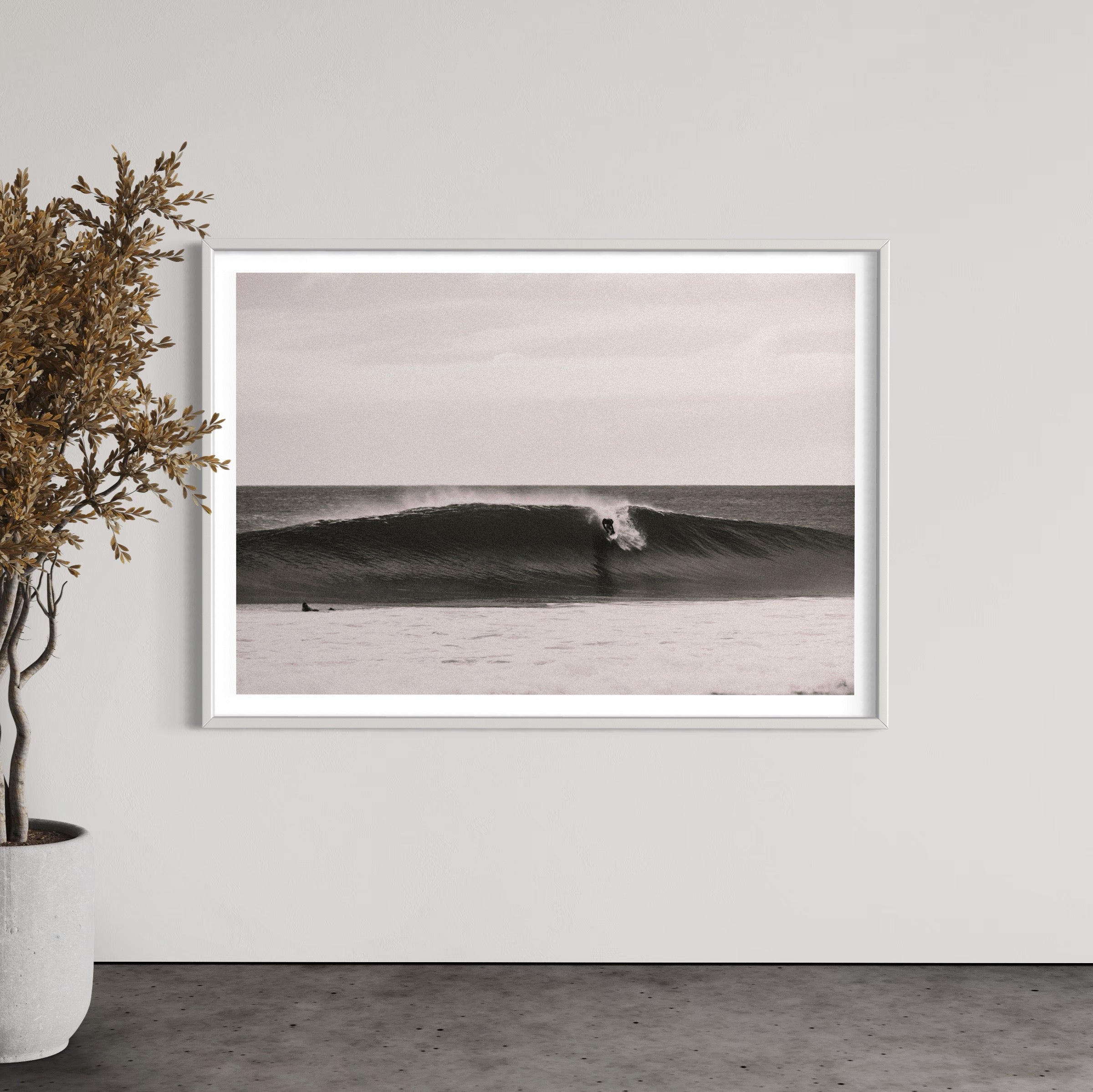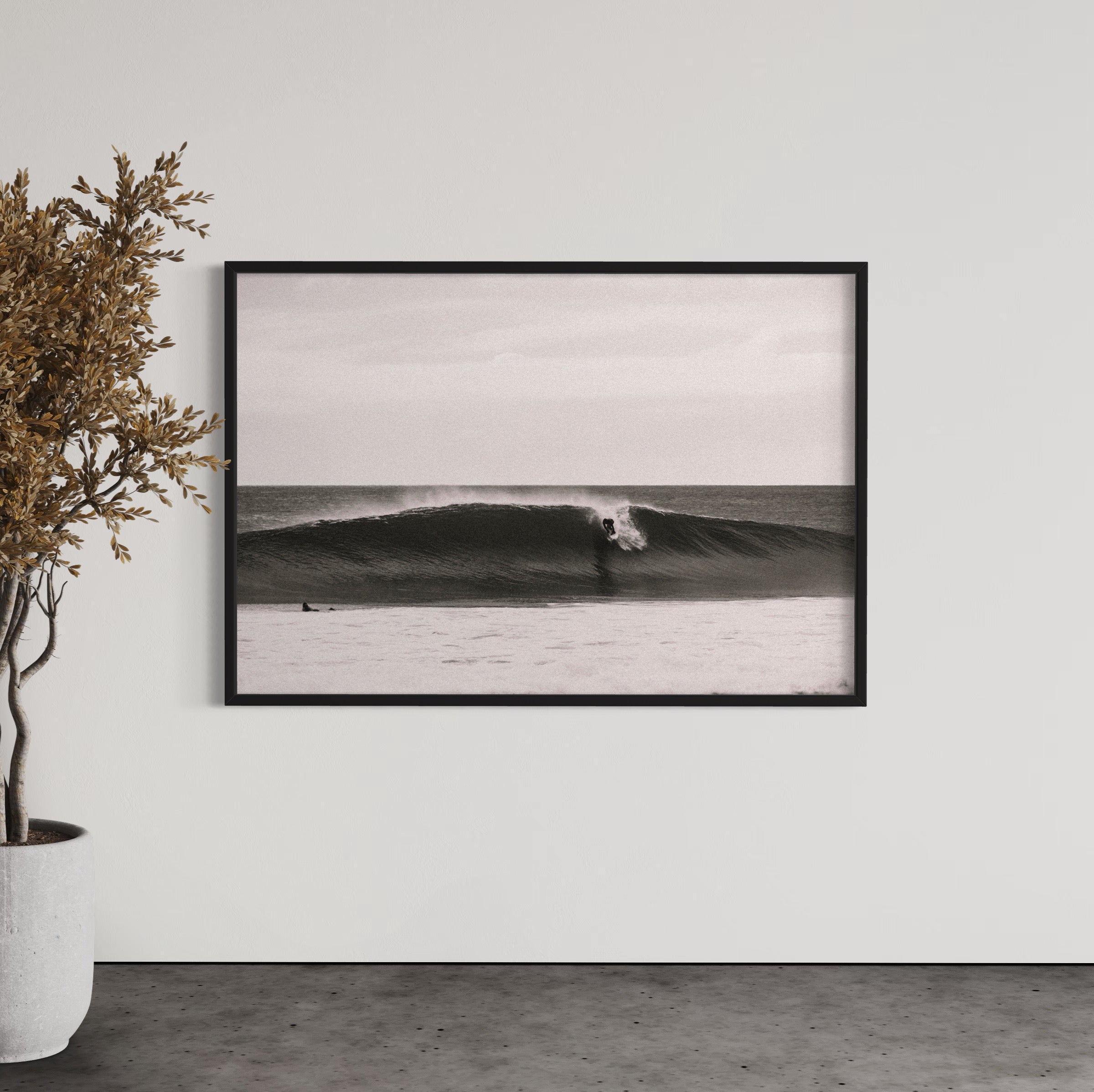 Peaked is a striking black and white photograph captured on the shores of Australia, freezing the exact moment a surfer drops into a perfectly formed wave. The image channels raw ocean energy and the elegant solitude of the sport. Its monochrome palette and perfect timing create a timeless coastal aesthetic that speaks to both adventure and calm. Ideal for surf enthusiasts and lovers of fine art photography, this piece elevates any space with its understated power and refined emotion.