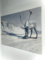 Of "Pipeline Tuttu" Parkhill remarks, "This piece was inspired by a wild journey I made from the bottom of Alaska to the very top (Utqiagvik/Barrow - where I used to live) in the jeep I’ve featured in the painting. We drove the dirt highway to Prudhoe Bay, then four-wheeled 200mi across the buckling sea-ice to the remote village. I wrote an article for Popular Mechanics about it, which you can still read online (however reduced in format): https://www.