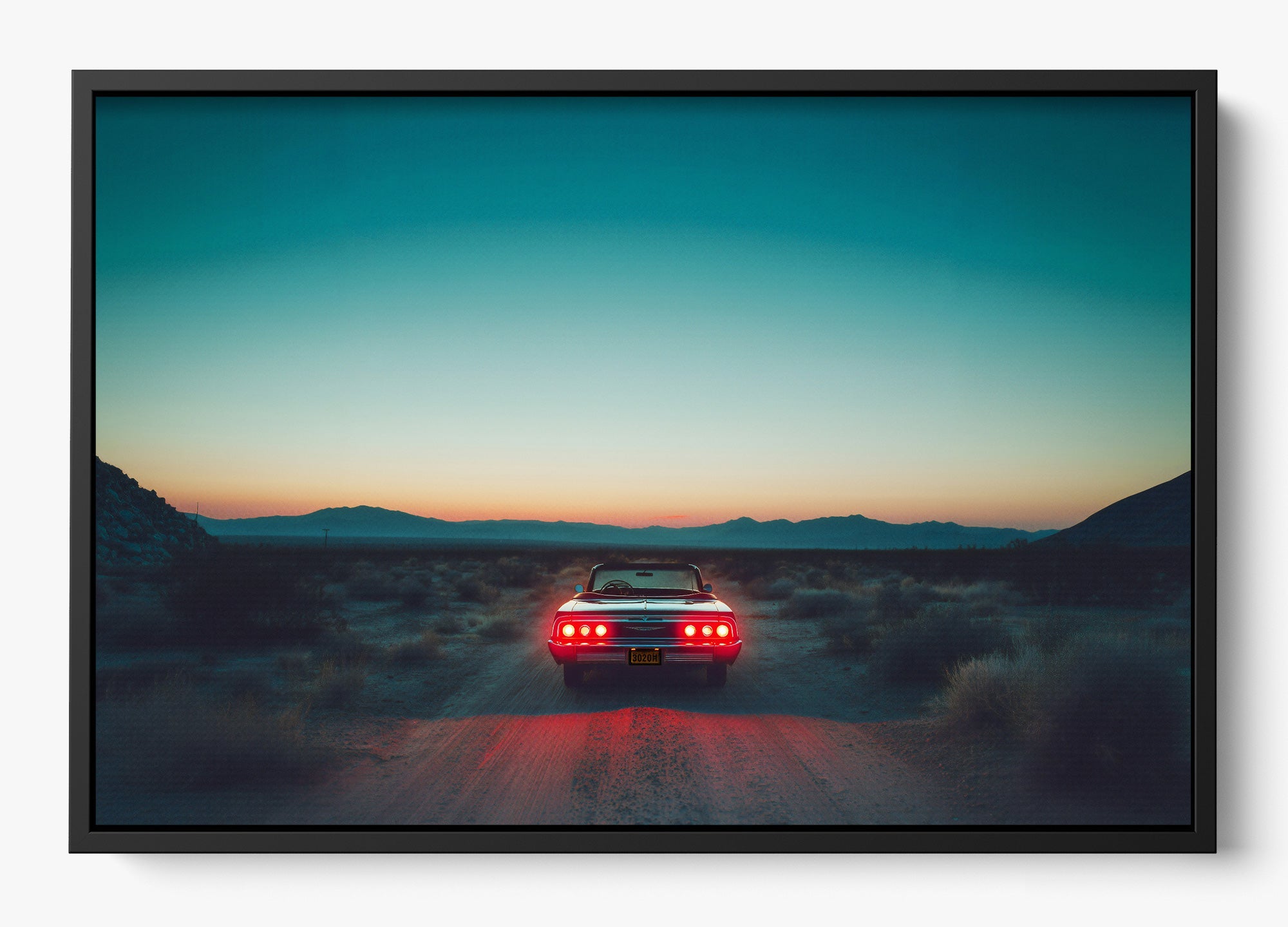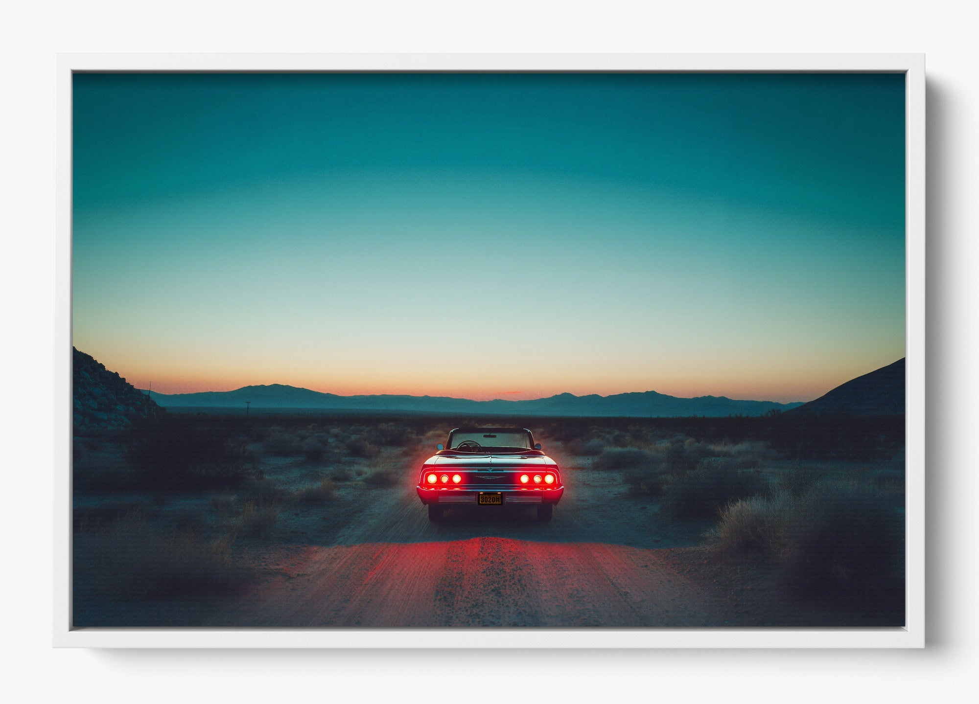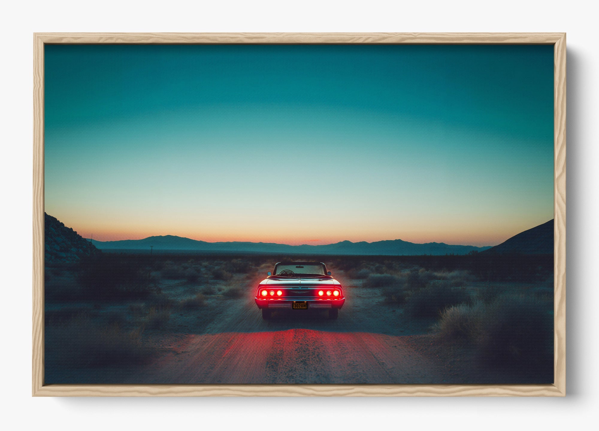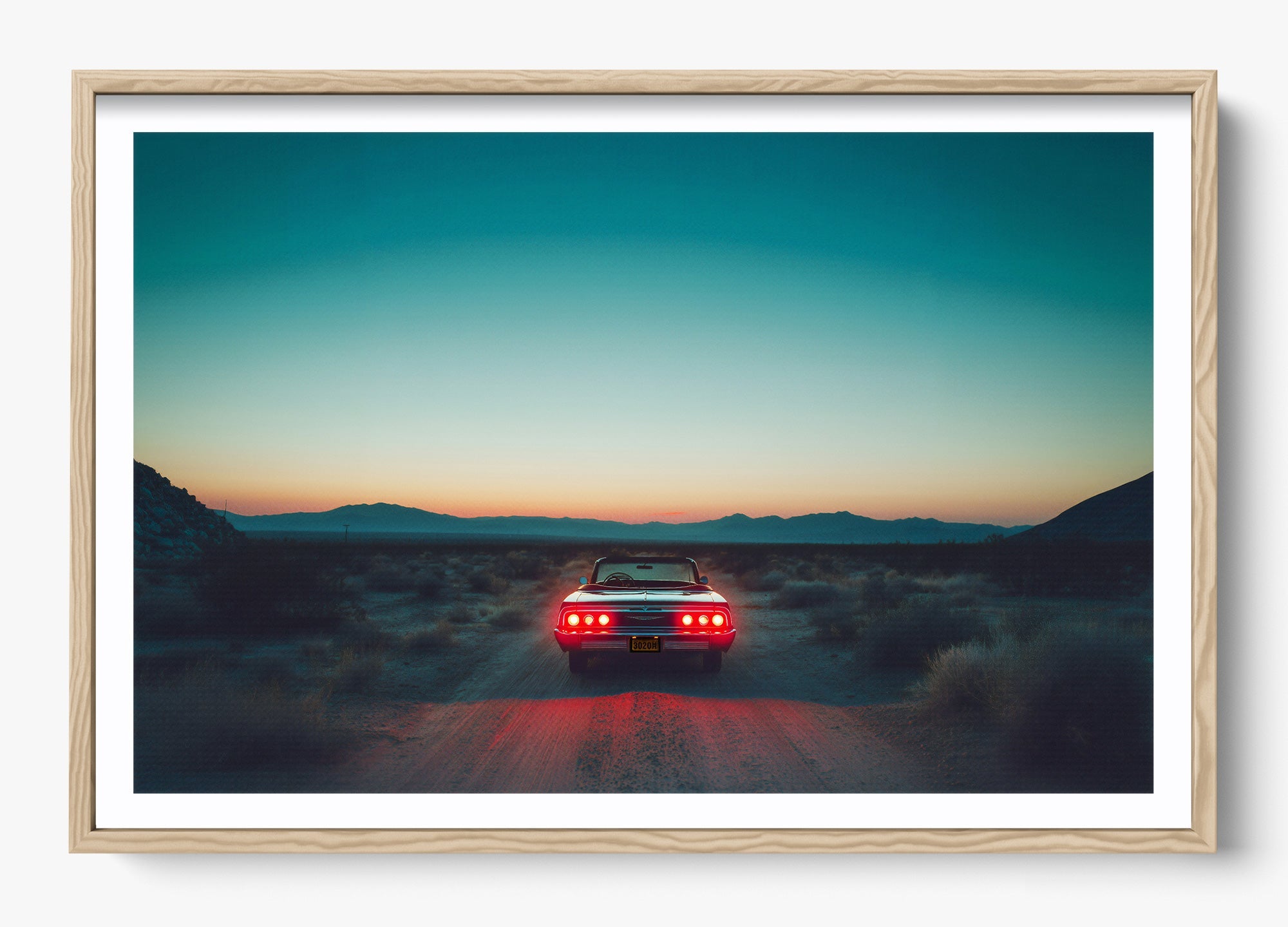 A pause in time, held in gold. Stop Right There captures a classic Mustang resting in the vast Mojave Desert as the sun sinks low, casting warm cinematic hues across steel, sand, and sky. It’s a portrait of stillness with an undercurrent of motion—a legend built for speed caught in a rare, quiet moment.