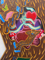 Tripper Dungan, an artist from the Pacific Northwest, brings a unique flair to his art, utilizing salvaged wood and acrylic paint to create vibrant, psychedelic, and humor-infused paintings and sculptures. Though self-taught, Dungan's artistic journey includes an education at the Las Vegas Academy of Performing and Visual Arts and some college-level art courses in Eugene, Oregon. His early career was marked by the creation of abstract and narrative-driven shadow puppet shows, which he performed throughout the West Coast, including at prestigious institutions like Reed College and Evergreen State.