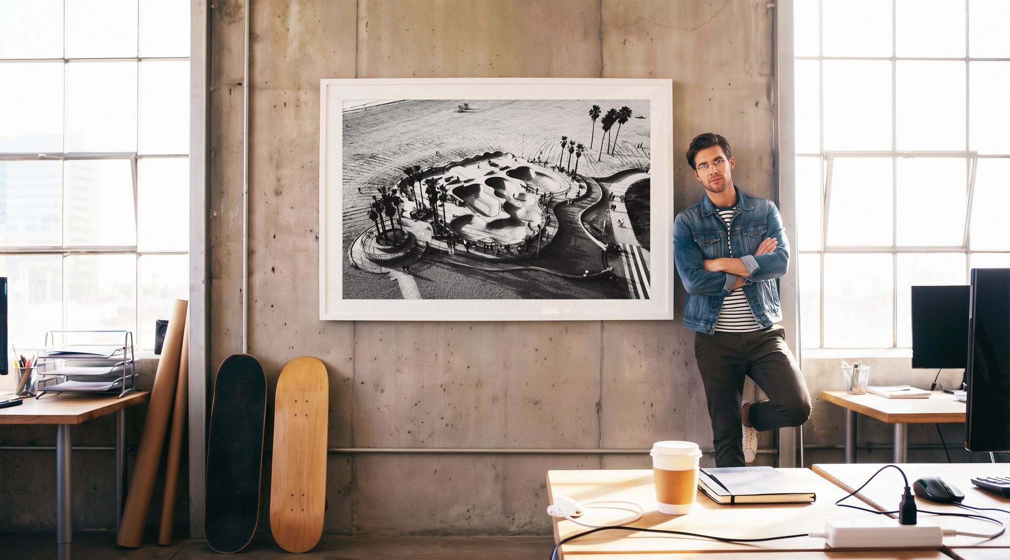 This sensational and iconic aerial photograph of the bowls in Venice was taken in the winter of 2023 as part of a private collection for an Olympic Gold Medal winning professional skate boarder. This piece is on a limited run and will not be offered next year.