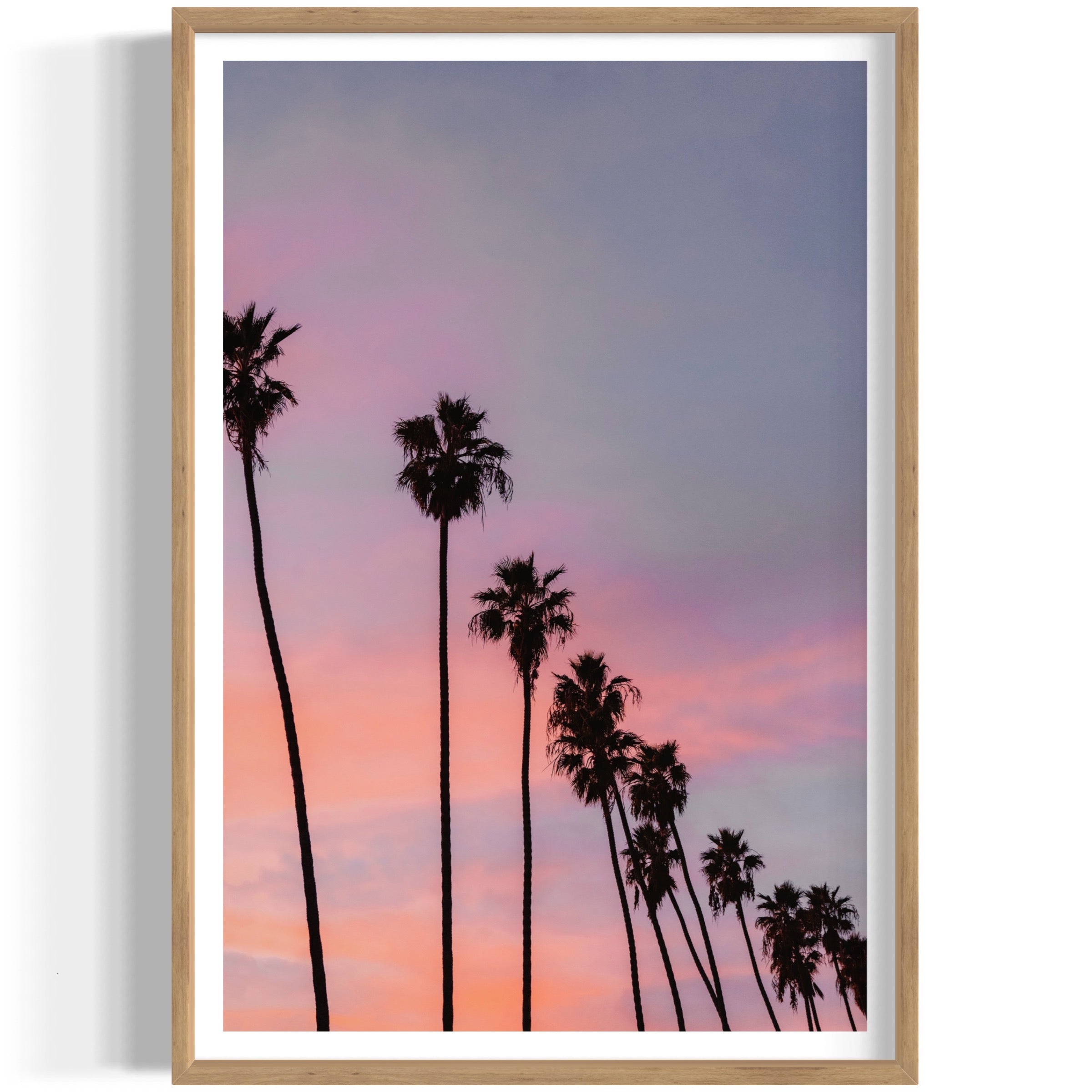 West LA captures the ethereal magic of a Los Angeles sunset—where towering palms stretch toward a sky painted in cotton candy hues of lavender, peach, and rose. Shot in the heart of LA, this fine art photograph embodies the dreamy stillness that settles just before dusk in Southern California. It's both a tribute to West Coast nostalgia and a minimalist study in silhouette and gradient. Perfect for collectors who crave warmth, elegance, and an effortless cool, this luxury framed piece brings the spirit of LA’s golden hour into any space.