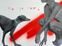In her carefully considered execution, Veriki employs a monochromatic palette, employing stark contrasts to underscore her narrative, while punctuating her compositions with vibrant strokes of red. It is through this contrast that Veriki’s work hums with immediacy, a transference of expressive, raw emotion from her rich internal topography to her canvas. Indeed, the vibrant red hues she employs serve as active agents, heightening the intensity of her visual narrative and accentuating the resonance of her work. Through her work, Veriki extends an invitation for audiences to explore their own vulnerabilities and join alongside her on this reflective journey.